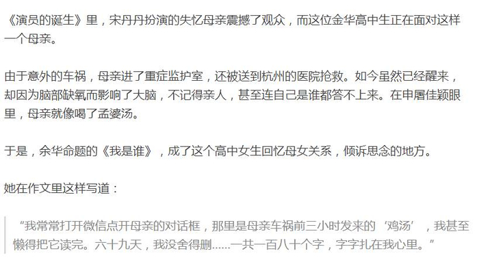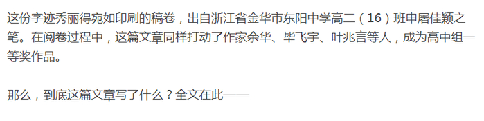 日前,杭州一家报社的举办了一次作文比赛。著名作家余华作为总评委,为总决赛亲自命题,《房子》和《我是谁》二选一现场限时作文。
