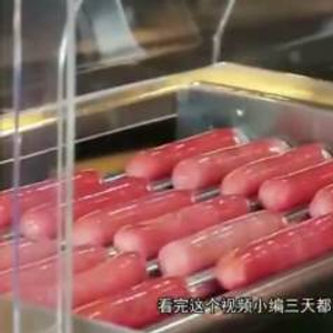 以及用机器制作成火腿肠的镜头,