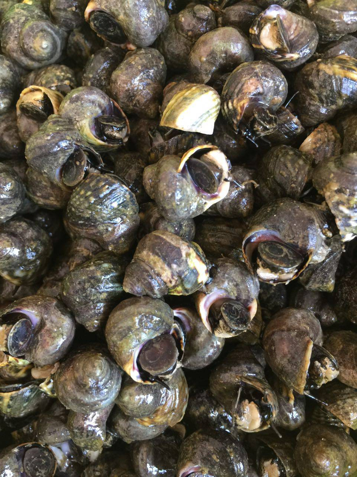 香波螺有个很高冷的学名,叫短滨螺,属潮间带物种,就是前面说的涨潮时在海里,退潮时也能出来晒太阳,如此交替的生长环境让香波螺优于潮下带物种。而且,香波螺和鲍鱼一样都是吃海藻长大的。所以,比起吃腐败物长大的个头比它大的海螺,这小小的波螺,是不是让人刮目相看了呢?