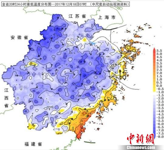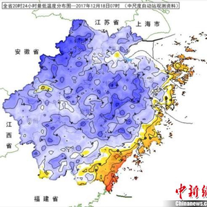12月17日20时—18日07时最低气温分布 图片来源:浙江天气网