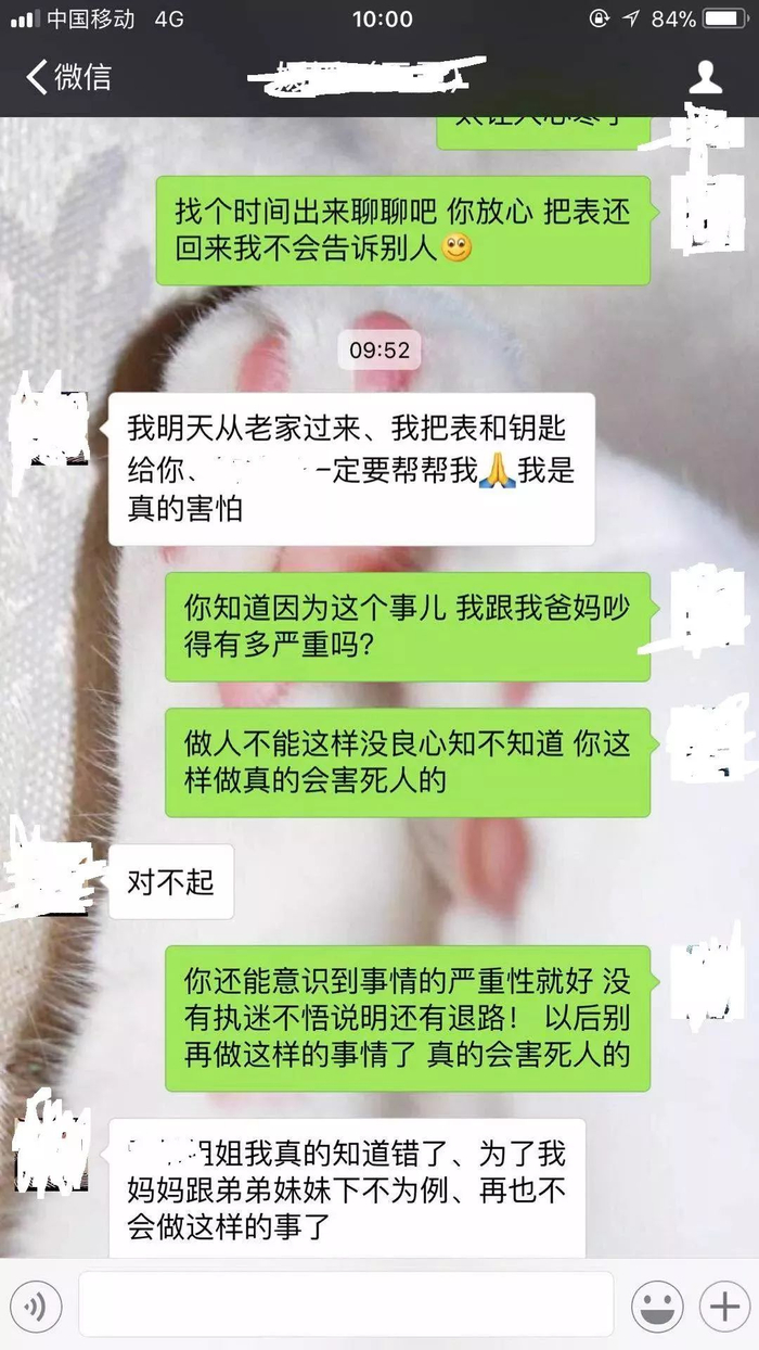 反复询问下,阙某梅称她有个闺蜜曾在案发时间内到过其住处,还通过微信承认盗走了手表,她手机里有聊天记录为证。