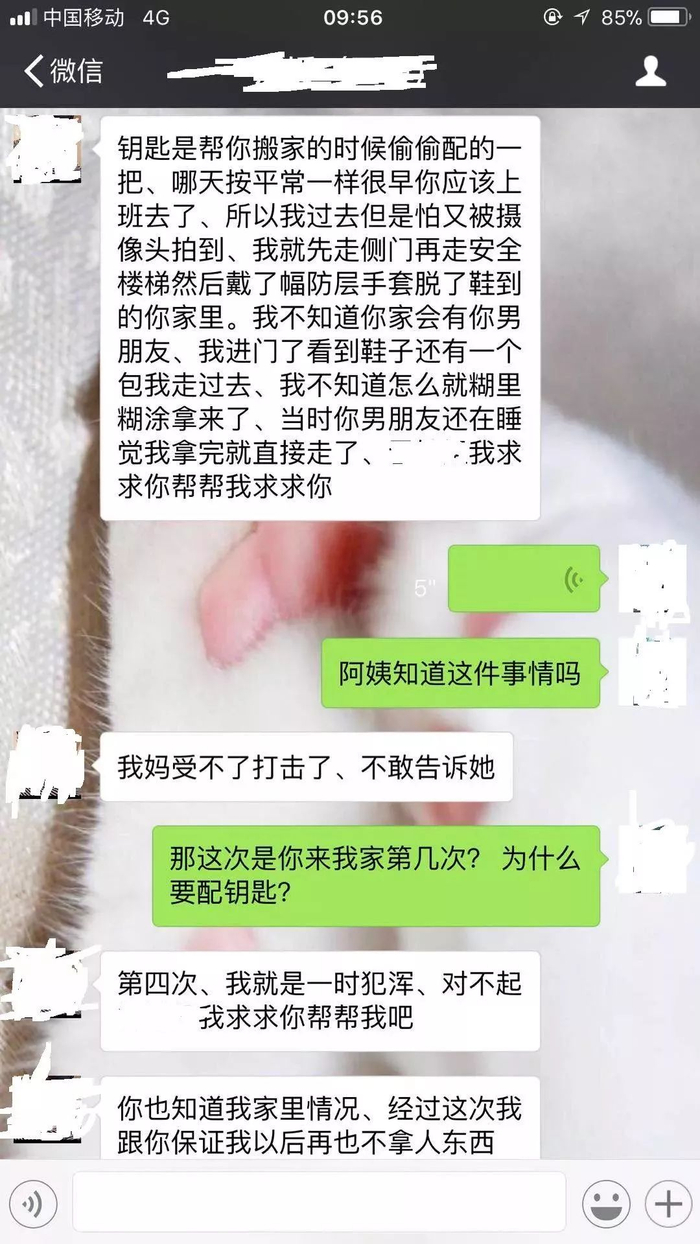 此时,阙某梅拿出手机,翻出和“闺蜜”的聊天记录。“闺蜜”在微信里向阙某梅“坦白”,承认偷配钥匙,半夜进入阙某梅家偷走了手表。
