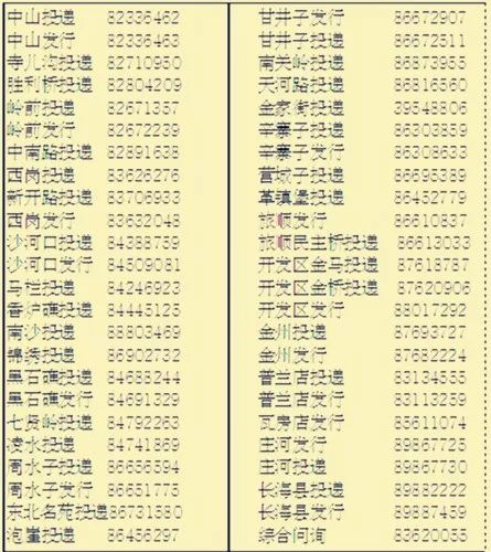 想订报的读者请拨打表格中的邮局订报电话(附表)
