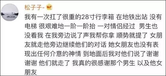 小玄都:看了评论我只能说,你们真厉害,什么都会做,不会就不做,抱着等第二天。现在社会已经冷漠至此了吗?就因为你有个私有的男朋友,就显得那么与众不同。你男朋友的身份,在是你男朋友这个身份之前,首先他是社会的一员,首先他是个男人,帮助和绅士的态度是他应有的。这和他帮谁没有关系。