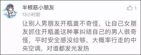 原标题:男朋友帮陌生女性拧瓶盖,你会发飙吗?又一道年度“丧命题”诞生了