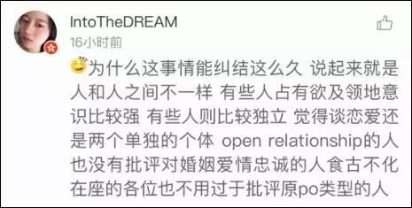在“百家争鸣”中,也有人静静地看着这一切。这位博主就觉得,每个人的性格不同,婚恋观不同,没必要强求人家和自己想得一样。所以大家还是别掐了:
