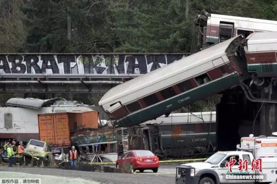 当地时间12月18日,美国全国铁路客运公司一列客车在华盛顿州塔科马以南脱轨,造成多人死伤。