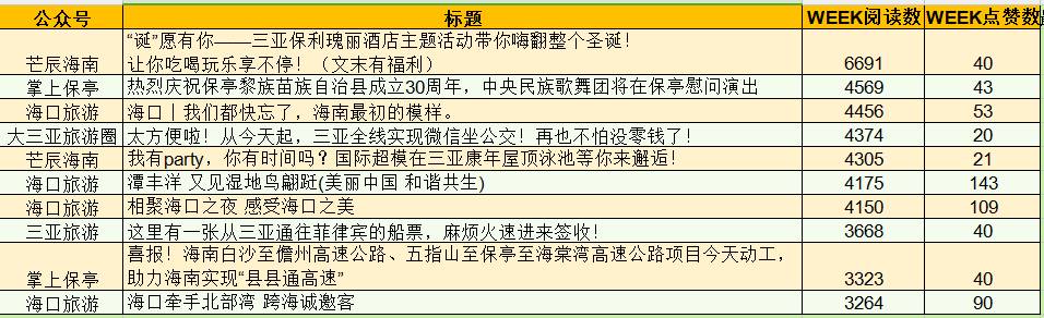 “海南首个微信影响力排行榜”第133期