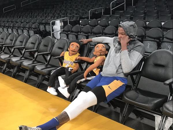 杜兰特身边摆放着两个科比的玩偶。