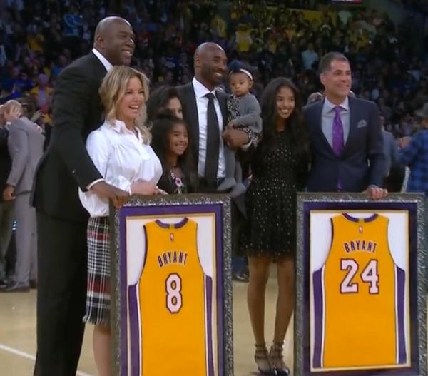 12月19日,在湖人主场迎战勇士的中场休息时间,全世界见证了科比的球衣退役仪式。