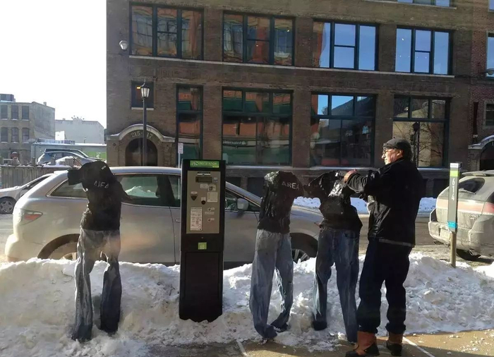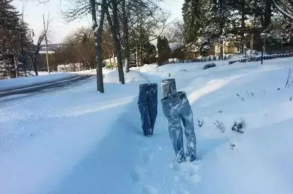 据《每日邮报》2016年1月20日报道, 美国明尼苏达州一位童心未泯的大叔将浸透了水的牛仔裤放在室外,不到半个小时,这些牛仔裤就结冰冻住,结结实实地站了起来。