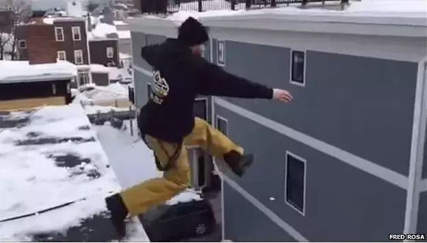 2015年,有人在社交媒体上发起了一个叫“波士顿暴雪挑战”的活动,问你敢不敢从几层楼高跳到雪堆里。其中有个半裸少男从自家二楼跳进了楼下的“雪池”,全网疯狂转发。不过市长对此表示不赞同,他表示:“It's a foolish thing to do and you could kill yourself.”(这太蠢了,完全是自杀行为。)