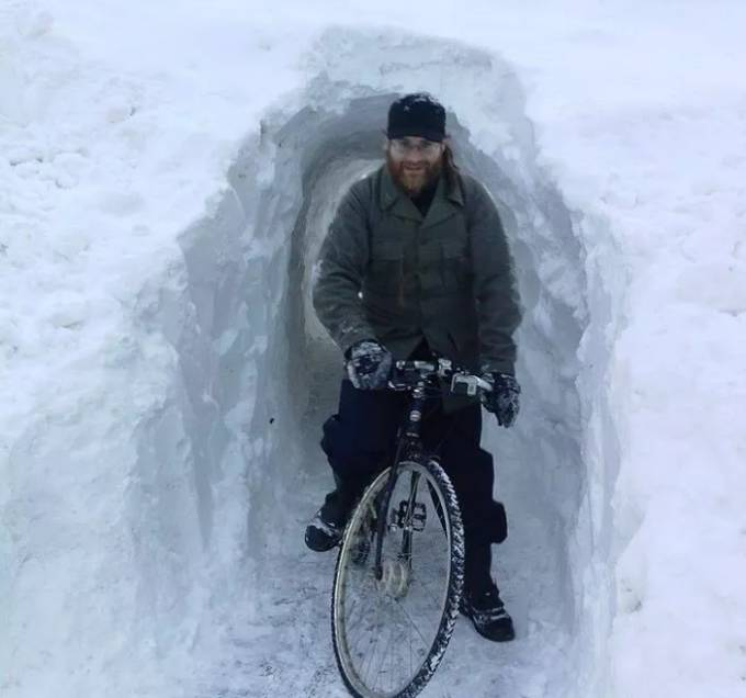 2015年的冬天下了一场暴雪,由于积雪占道,波士顿的自行车道基本上都被攻占了。有几名骑行者发现自己出行路上有一段被厚厚的雪墙堵上了,于是决定自给自足,挖了一条40英尺(约12米)长的自行车隧道,还变成了附近骑行者的观光点。不过很快隧道的顶部就被政府以安全为由给拆除掉了......