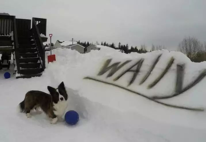 这只叫Wally的狗狗极其享受2017年冬天那场雪。主人在自家后院里打造了专属于他的雪地迷宫,一个冬天都可以在里面尽情撒欢玩耍。