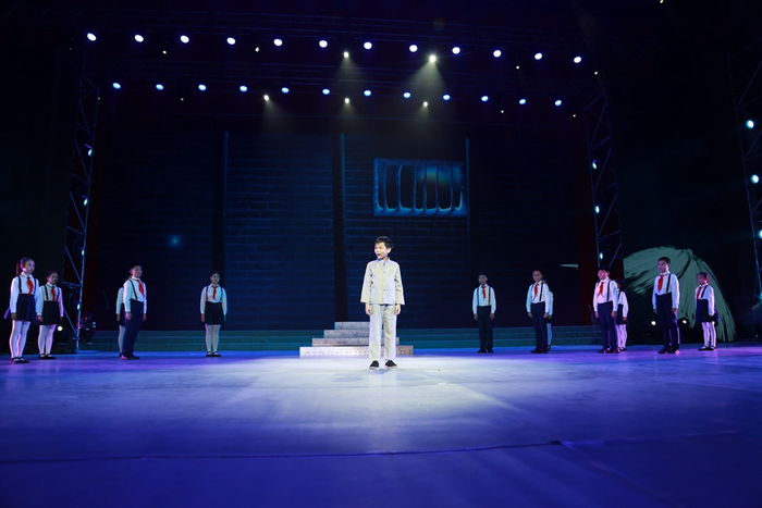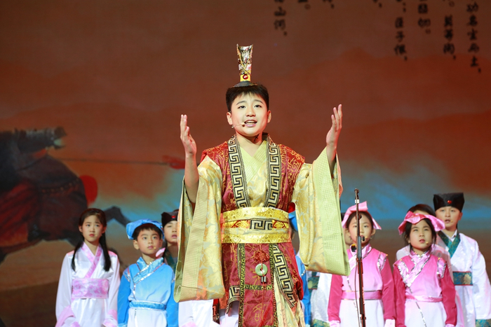图为曹灿艺术团表演情景朗诵《永远的九岁》