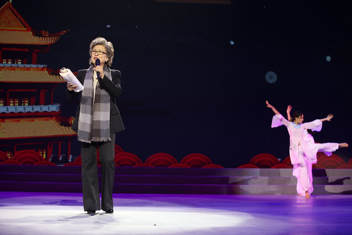 图为著名演员宋春丽现场表演诗朗诵《水调歌头·明月几时有》