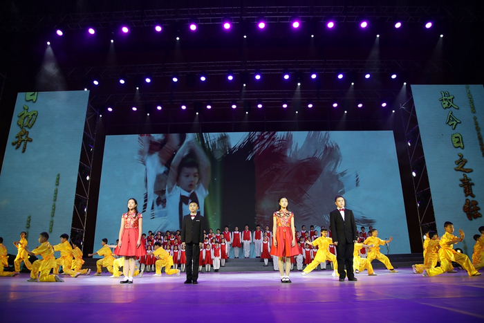 图为历届获奖选手表演诗朗诵《少年中国说》