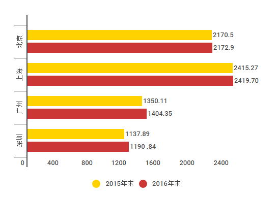 ▲中国一线城市2015年末与2016年末常住人口数量对比(单位:万人)