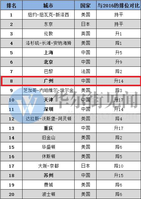 在增长势头方面,上海的排位升幅将慢于北京,广州涨势喜人,将上升14位。