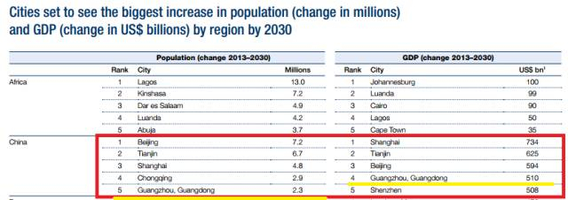 按照牛津经济研究院的预测,18年后的中国城市经济版图中,“北上广”依然是前三大城市,而天津、深圳将成为中国GDP第四、第五大城市。