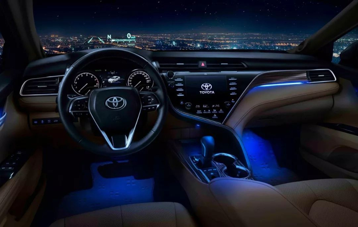 第八代凯美瑞炫酷的造型并不以牺牲空间为代价,在车长增加35毫米、宽度增加15毫米、轴距增加50毫米的基础上,塑造更为宽裕舒适的内部空间。特别是混动车型将原本位于后备箱的电池组安置于后座座椅下面,实现了和汽油版车型一样的后备箱容积。