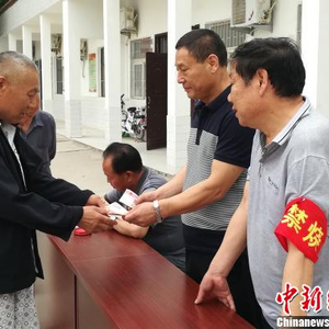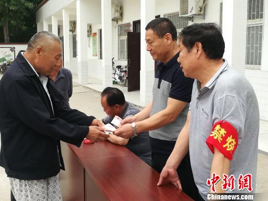 张志勇为村民发放救助金。 韩争强 摄