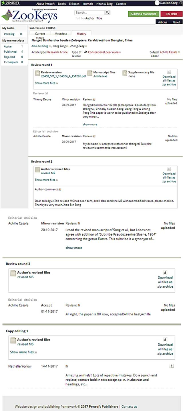 《ZooKeys》上的发表流程截图