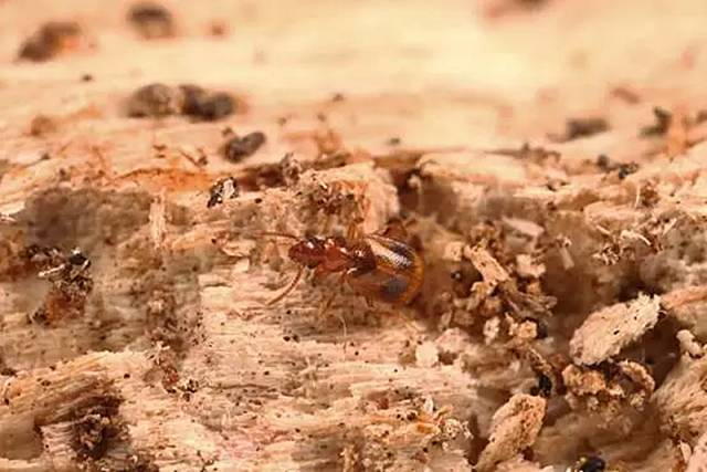新种双斑粗角步甲正在朽木表面散步