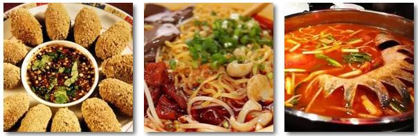 恋爱豆腐果是贵阳有名的风味小吃。它的主料是切成长方形小块的白豆腐,特点是外脆内嫩、咸辣爽滑。贵阳街头还有一种常见小吃叫“丝娃娃”,就是在大米面粉烙成的薄饼中,卷入萝卜丝、折耳根(鱼腥草)、海带丝等,吃的时候配上调料,酸辣爽口,开胃健脾。此外,贵州的肠旺面和苗族特色菜酸汤鱼,也值得一试哦。