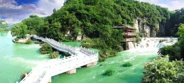 天河潭风景区:天河潭风景区位于贵阳市花溪区石板镇境内,景区内有宽210米的钙化滩瀑布;龙潭洞内则有石钟乳、石笋、石柱等喀斯特景观。景区附近还能看到民族村寨的石板建筑,颇有农家风情。