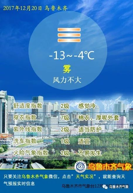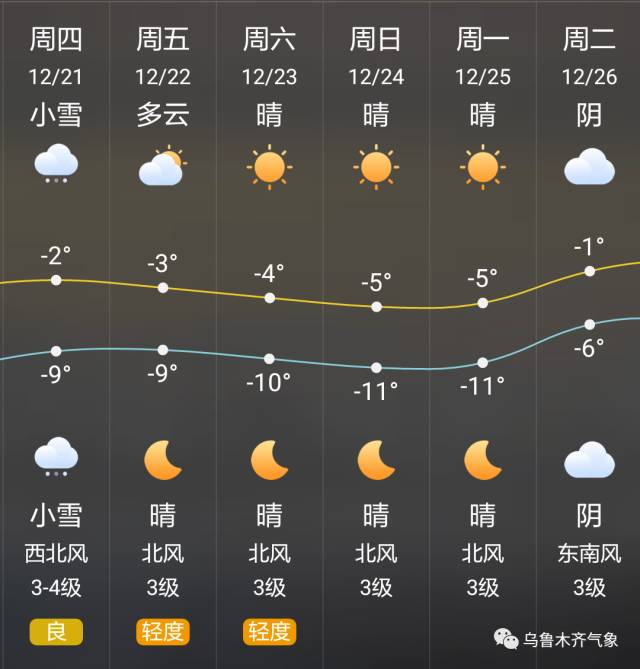 明天夜间,城区、米东区晴有时有雾,南郊和山区晴;后天白天,城区、米东区、南郊和南山山区小雪,达坂城多云有4-5级西风。
