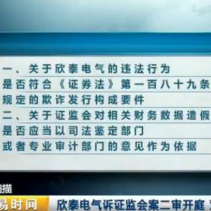 中国证监会主席助理 黄炜介绍,它不仅仅是欣泰电气诉讼证监会的个案,更重要的是保护证券市场的秩序,证券市场参与主体的活动应当遵循法律。所以这个案件,证监会是高度关注,非常重视的,希望这个案件能够作出公正的判决,向市场传递积极正面的信号。