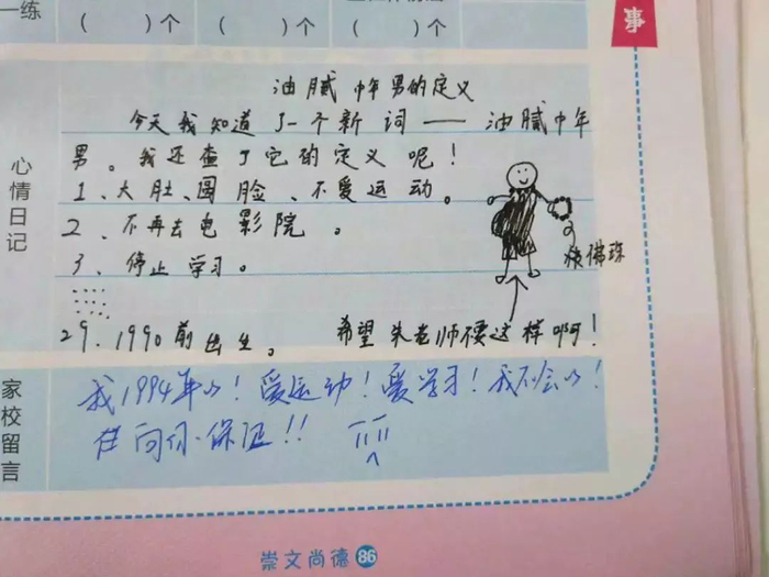 杭州小学生给班主任留言:不要成为中年油腻男!