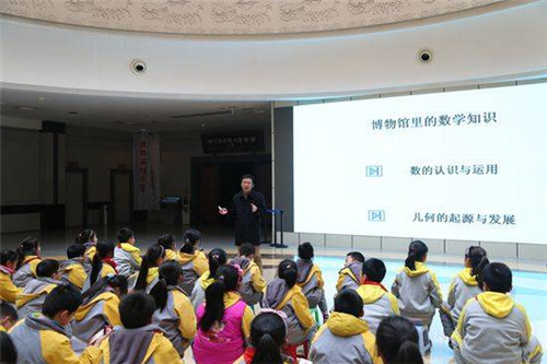 该课程旨在从博物馆教育的角度挖掘文物资源的信息,培养学生的核心素养,例如“学会学习”、“实践创新”、“科学精神”等。课程设计在于打破传统学科思维,让博物馆文物成为跨学科、多元智能等教育理念的载体,帮助学校的老师们认识博物馆的文物,启发学科老师利用博物馆的文物进行教学的再创作。四川省博物馆教育研究所的老师们把小学数学学科的线条、图形、对称、运算等知识点巧妙的融入到了对文物的释读之中,让孩子们把课堂学过的知识在博物馆中得以运用。“这是鸡兔同笼的问题啊!”、“青铜纹饰原来都是古人运用对称之美的体现呢!”、“知道毫米、厘米、米的长度计量单位,但是估算李冰石像的身高原来也不容易啊。”、“新石器时代的人类就对等边、等腰三角形有了认识还运用在了陶器上面。”同学们拿着学习单,带着问题在展厅探索关于数学的奥妙,博物馆教育员做为引导学生进行探索的老师不直接告诉他们答案,却给予他们寻找答案的线索和提示,帮助他们自主的学习。同学们在整个“比赛”氛围中,个个都跃跃欲试,争当博物馆的“最强数学家”。