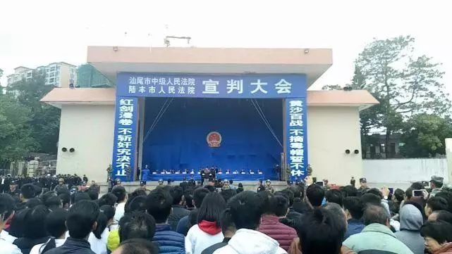 据新京报、陆丰一线消息,2017年12月16日,广东汕尾、陆丰两级法院联合在陆丰东海镇体育广场召开宣判大会,现场有多位群众围观。宣判大会对赖木龙等12人进行公开宣判,其中10人因制贩毒品、抢劫杀人被判死刑,宣判大会后执行。据陆丰市人民法院12月12日发布的公告表示,公民可以到场旁听。(新京报)