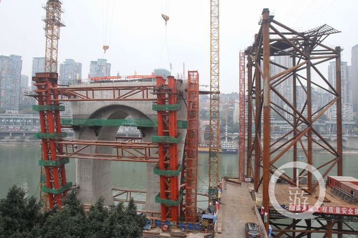 近日,上游新闻-重庆晨报记者从曾家岩大桥工程施工现场获悉,该工程最大的亮点之一,就是为了满足轨道10号线和2号线换乘的需要,轨道10号线曾家岩站将设置在大桥主体结构范围内,这在国内尚属首次。