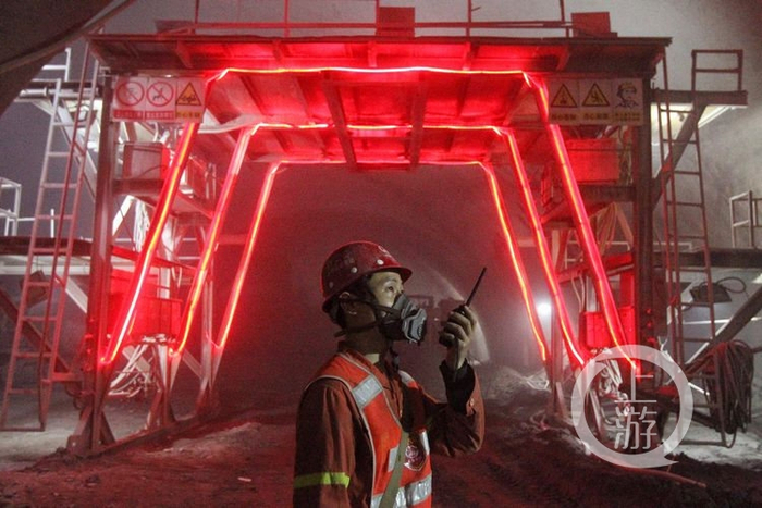 △曾家岩大桥嘉滨路A连接线隧道的施工场景。