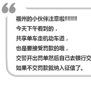 福州已有人吃罚单!骑共享单车走机动车道、闯红灯等,会被罚!不缴罚款还会影响你驾考、换证、年检等