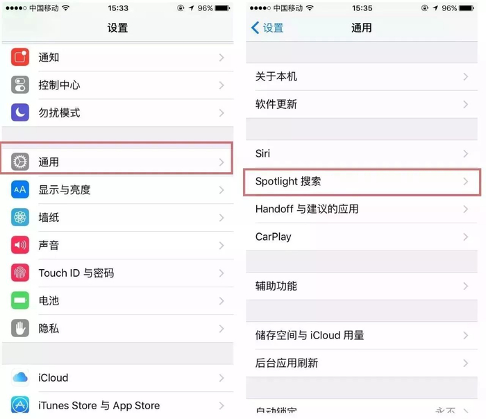 iPhone用户左滑屏幕可以看到Spotlight搜索,在搜索栏输入关键词,可以快速切换app或搜索手机内的内容。如果平时不怎么用搜索功能,可以点击设置—通用—Spotlight搜索关闭。