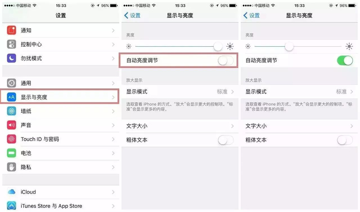 屏幕是手机最耗电的地方之一,其实屏幕太亮不仅耗电还伤眼睛,建议大家设定成屏幕亮度自动调整模式,点击设置—显示与亮度—自动亮度调节。