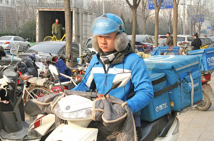 采访当天,北京室外气温最低到零下9摄氏度,但朱仲银穿得却异常单薄,甚至都没有穿上棉衣。他说:“即使天气十分寒冷,我们也不敢穿太厚,中午忙的那段时间,里面的衣服基本都是被汗浸湿的状态,手一摸后背全是水。何况,穿多了,送餐的时候也跑不动。”