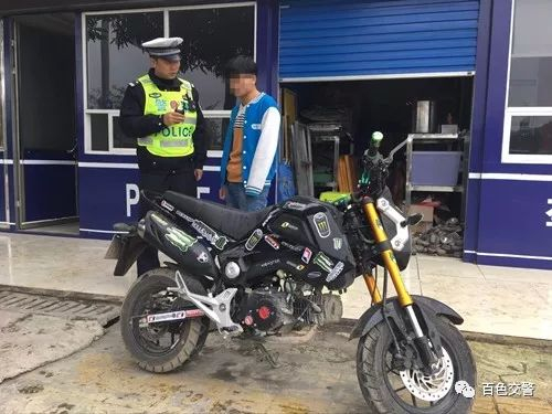 12月14日10点40分许,百色市交警支队直属二大队阳圩中队民警在城东执法服务站执勤时,发现了一辆有“奇特”号牌的摩托车驶过。
