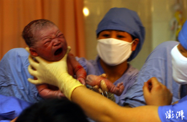 1月6日凌晨零点零2分,迟到了4年的中国第13亿公民张亦弛在北京市妇产医院降生。 刘戈宇 摄