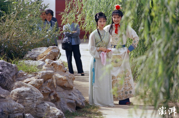 世界旅游日,林黛玉扮演者陈晓旭,贾宝玉扮演者欧阳奋强在北京大观园。 王文波 摄
