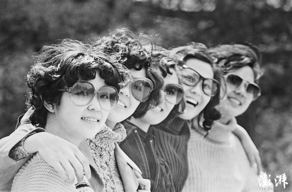 北京八大处,戴蛤蟆镜的时髦女郎。上世纪80年代,蛤蟆镜在城市青年中风靡一时,成为时髦男女的专宠。 王文澜 摄