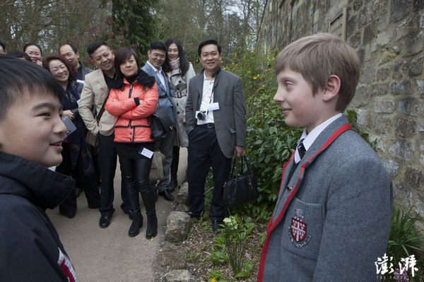 英国巴斯,来自中国的父母们参观金斯伍德中学,为自己的孩子出国留学寻找合适的学校。