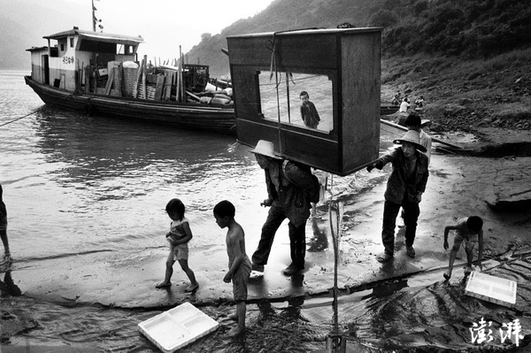 三峡移民把家具从山上背下来装船,他们即将离开故土。 胡伟鸣 摄