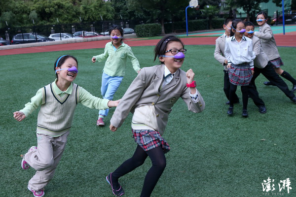 11月7日,孩子们带着防霾鼻罩在学校操场嬉戏。同年9月,国务院发布了被称为“史上最严厉”的《大气污染防治行动计划》,要求到2017年全国地级及以上城市可吸入颗粒物浓度比2012年下降10%以上。 张新燕 摄