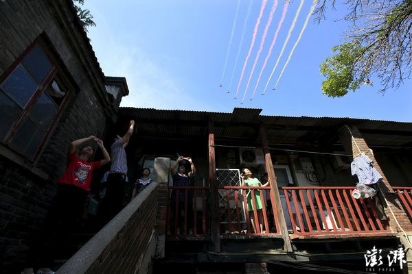 9月3日,空中梯队从北京胡同上空飞过。当日,纪念中国人民抗日战争暨世界反法西斯战争胜利70周年大会在北京举行。 宋扬 摄