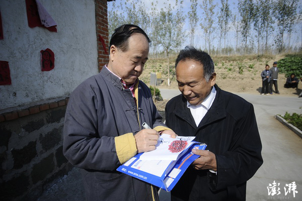 10月30日,山东潍坊,莫言在获得诺贝尔文学奖后回老家旧居探访,并为粉丝签名。 刘畅 摄